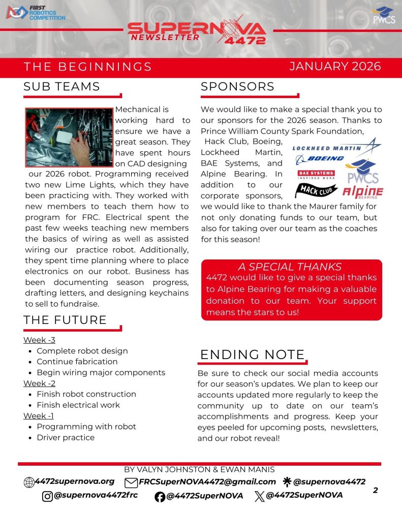 The application for the 2026 season has closed, but students who are interested in joining us next season may fill out the form below. We do not require any prior robotics knowledge but a willingness to learn and work hard, this application helps us get to know you and what you are interested in.